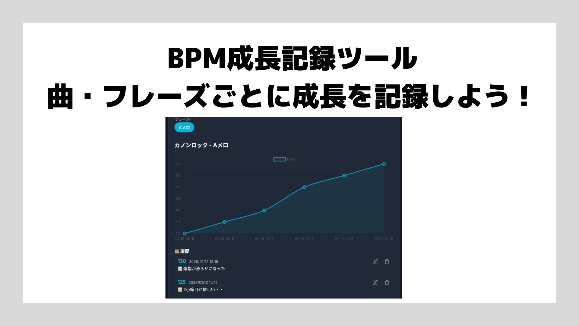そんな「感覚的な上達」を「具体的な数値」として記録し、グラフで可視化できるのが、今回ご紹介する「BPM成長記録ツール」です。