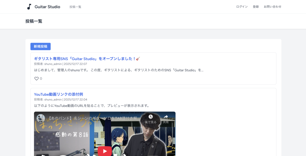 本日リリースした「Guitar Studio」には、単なる掲示板を超えた、リッチな体験ができる機能を詰め込みました。